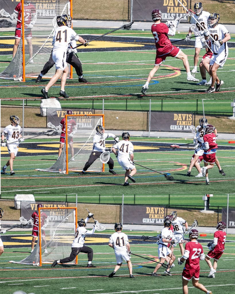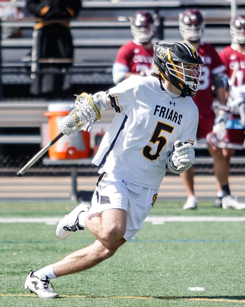 The future Blue Devil, who backstopped the Colorado Kings to a pair of NLF National Championships, is extremely athletic for the position. He moves effortlessly in and out of the crease, has the poise to stare down even the best shooters in the country and doesn’t give up bad goals. Against the Friars, he was locked in from the start and had five saves in each of the first, third and fourth quarters. The Colorado native’s save on Rooney was one of maybe four or five on the doorstep, which stifled the St. Anthony’s offense.