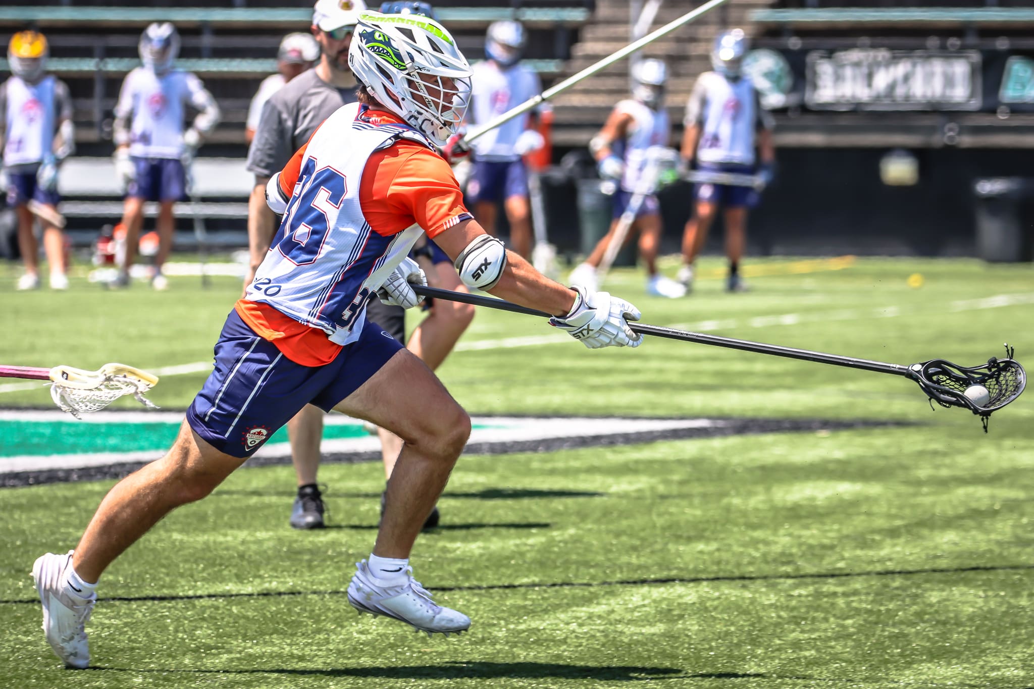 Curry had an outstanding June which caused him to skyrocket up a ton of colleges’ boards. He might have been the best and most consistent attackman at the Elite 120, scoring goals in multiple plays. The 6-2, 175-pounder is extremely creative and uses his body well to create scoring chances for himself. In the second game of the day, he tallied a hat trick in maybe five minutes of game play, including a gorgeous backhander off of a strong dodge up the hash from X. With his size – the ’26 class is lacking in big-bodied offensive weapons – and goal scoring ability, it’s hard to envision Curry not being a priority for a ton of schools after the summer he’s had.